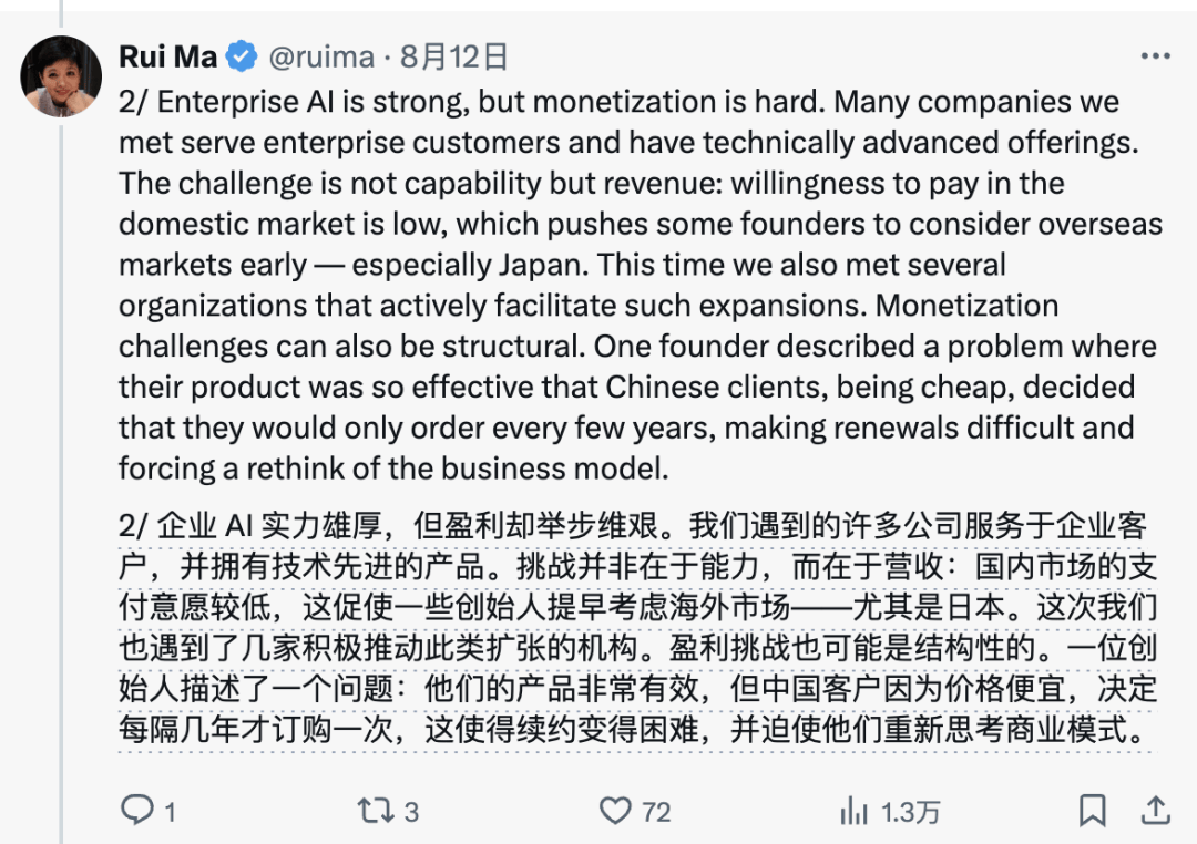 Rui Ma暗示,是科技播客Tech Buzz China的创始人兼阐发师,