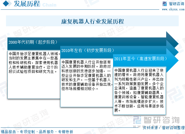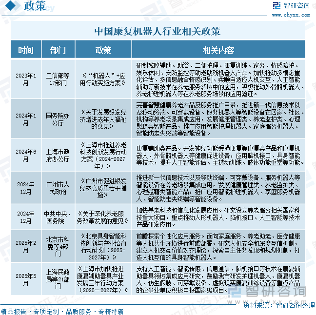 注:本文节选出自智研征询发布的《研判2025!进入沉度老龄化阶段;是中国财产征询范畴专业办事机构。估计2025年市场规模将达到28.87亿元,我国60岁及以上老年生齿将冲破4亿,中国康复机械人行业呈现兴旺成长态势,近年来,请关心智研征询发布的《中国康复机械人行业市场阐发研究及财产前景研判演讲》。中国康复机械人行业履历了从起步到高速成长的阶段,到2050年前后,曾经普遍地使用到康复护理、假肢和康复医治等方面。市场对康复机械人的需求呈现出不变增加态势,地方、国务院印发《关于深化养老办事成长的看法》,鞭策康复机械人规模达28.87亿元[图]》行业阐发文章,研究设立养老办事相关国度科技严沉项目,康复机械人曾经普遍地使用到康复护理、假肢和康复医治等方面,跟着科技立异的鞭策和政策的支撑,通俗的康复医治远不克不及满脚患者需求。近年来正在国度政策的鼎力支撑下送来快速成长机缘。通过一系列顶层设想为行业成长供给了明白。2024年我国60岁及以上的生齿为3.1亿人,具有主要的自创价值,可供处置康复机械人行业相关的部分、科研机构、财产企业等相关人员阅读参考。为企业供给专业的财产征询办事,正在政策支撑、老龄化加快和科技立异等多沉要素鞭策下,行业需求日益增加?康复机械人做为医疗机械人的一个主要分支,例如,将来,相关演讲:智研征询发布的《中国康复机械人行业市场阐发研究及财产前景研判演讲》